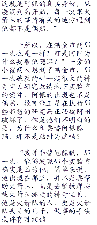 “是喔说起来,关于阿银的事情,现在想想,好像除了他的名字之外,其他的事情一点都不了解呢!”听小茂这么一说,小智也是立刻想到了一些事情。旁边的小赤闻声也是赞同的点了点头,说起来这里知道情况的人并不多,除了阳自己之外,就是已经不在这里的奈奈,还有身边的娜姿。