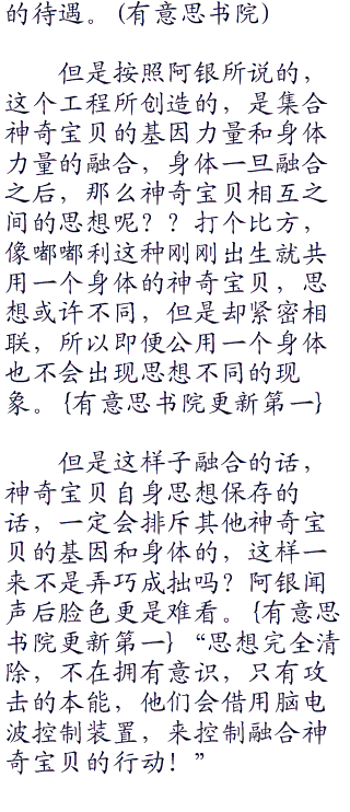 “什么??”听到阿银这么说,就算小智这种不太了解什么基因融合什么的,也同样是极其惊讶的,而且这种做法,简直就让人不能接受,神奇宝贝如果和其他神奇宝贝融合了,那它还是原来的神奇宝贝吗?很明显不是,而且不用多说,这种方式一定相当痛苦,而沉思了一会说道。“那思想呢??”