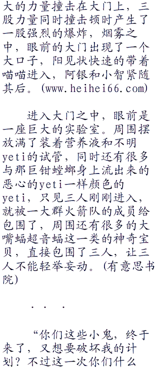 “好!你要小心点,暴蝾螈你留下来听小赤指挥!”阳闻声后点了点头,小赤的能力他们是绝对相信的,所以听到了阳这么说以后,