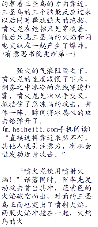 火焰鸟的脑袋吐出了炙热的火焰漩涡,顿时与暴蝾螈的破坏死光撞击在一起,两股力量相互对抗着,暴蝾螈逐渐的加强力量,破坏死光的威力终究更胜一筹,逐渐的将火焰漩涡给压了回去,看到这一幕的阳微微皱了皱眉头。眼中闪过一丝光芒。“三圣鸟把这该死的攻击给挡回去!”