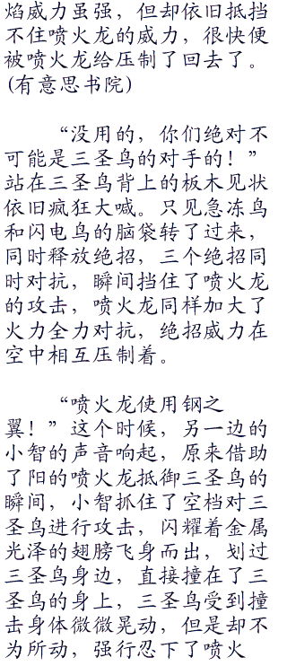 (第三更!!这是特别篇中才有的剧情,我没怎么看,但知道有这么回事,所以用合体的三圣鸟做背景,自己构思了这个剧情!希望大家喜欢把!)