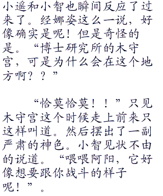 “我看看哈!火稚鸡是雏鸡神奇宝贝,目前能用的绝招是火花和啄攻击!好。。火稚鸡使用啄攻击!”只见小遥拿出了图鉴还认真的就这样在战斗中查看起资料来了,这要是换做在正规比赛中哪里有这样的时间,别说是正规比赛了,就算是在收服神奇宝贝的时候也是一样。