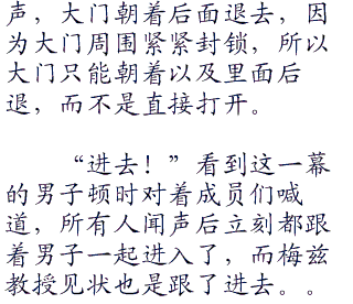 阳上前去检查了一下门,小智安静了下来没有说话,片刻后阳退后了几步,来到了娜姿的身边,对着娜姿点了点头,两人没有说话,但是却有自主的默契,娜姿点了点头走上前去,距离门三米的地方停了下来,随后说道。“我把门打开,你们离门远一点!”