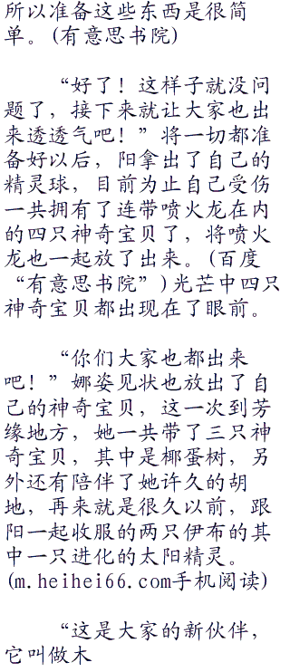 “那是当然,野外旅行,什么事情都必须要靠自己,不准备的话,可是没有东西吃的哦!”在阳看来,像小智那样的旅行,虽然其他方面小智都没问题,不过唯一一点就是生活方面就做的不太好,没有一个可靠的人照顾的话,生活方面就是一塌糊涂,相信三餐不是野果就是泡面了吧!