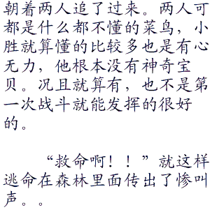 “也差不多了,反正不着急,我看我们今天就先在这里休息吧!”临近傍晚的时候,虽然才刚刚进入黄昏,但是因为在森林中,所以天色已经显得很暗了,一开始精力旺盛的小遥和小胜在后来才知道什么叫做幸苦了。一开始就把精力都耗尽了,再加上后来也没发生什么事情,两人都显得无精打采的样子。