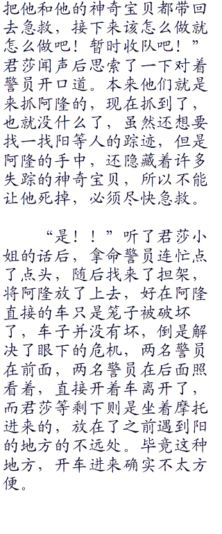 “呜。。这这”听到了阳的话,阿隆无话反驳,看到阳的眼神和不可否认的质问,阿隆更是说不出话来。心中也是知道,这小子实力不简单,战斗起来自己恐怕没有胜算,而且警察已经包围了森林了,心中暗自后悔,早知道如此,就不要管着两个小鬼了,直接想办法脱身便是。