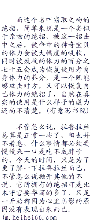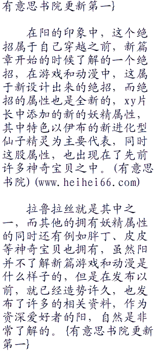 很快的众人都回到帐篷去休息了,而神奇宝贝们也在阳的吩咐下寻找舒服的地方睡觉,只有拉鲁拉丝自己坐在一块石头上面低着头,看样子今天晚上的事情虽然它成功的使用了绝招了,但是阴影并没有完全消失,至少阿隆的事情虽然不在有影响,但是因为它害的木守宫受伤却还是耿耿于怀。