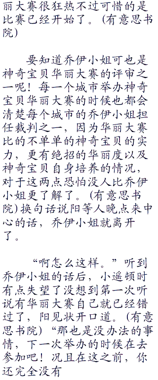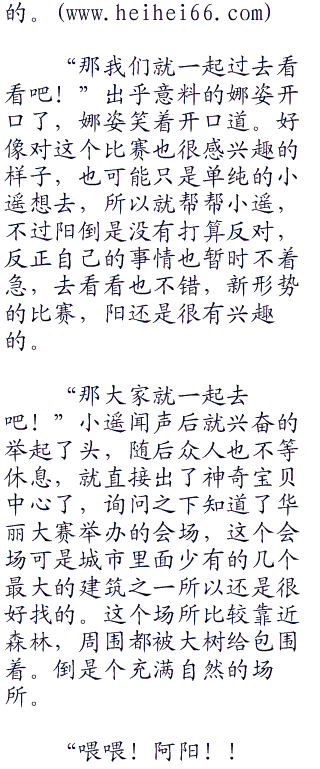 “你们刚刚来卡那兹市吧?因为卡那兹市现在正在举行神奇宝贝华丽大赛,所以在中心的训练家,大部分都去观看比赛了!”乔伊小姐闻声后温和的笑着说道。从小胜会这么问就知道阳等人一定是刚刚来到卡那兹市还不清楚状况的。而听到了这话的小遥立刻就不淡定了。“神奇宝贝华丽大赛!!真的吗?”