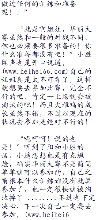 “呜终于走出来了!呆在森林里面也不错啦!不过在森林里面呆久了偶尔出来走走也不错啦!小胜快看看从这里到卡那兹市要多久。”中午时分,一行人终于走到了橙华森林之外,经过了几天的修行,都有了不错的提升,而小遥两姐弟也习惯了在野外旅行了,接下来再众人面前的就是卡那兹市了。