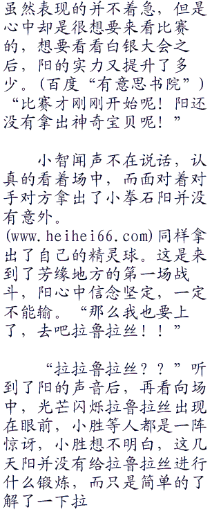 “那就好,那么我们就开始吧!”听到阳那么说,杜鹃也是松了一口气了,只要阳答应就没问题,接下来就可以开始真正的比赛了。而娜姿等人也都坐到了观众席上了,包括其他学员。小胜兴奋的说道。“好紧张啊,这可是我第一次近距离的观看现场的道馆比赛耶!”