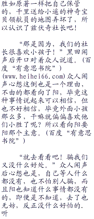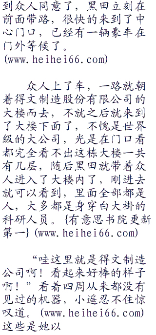 “你们好,我的名字叫做黑田,是得文制造股份有限公司兹伏奇社长的助理秘书我叫做黑田,你们几位是小胜小朋友的同伴吗?”男子大约三十岁左右,带着一个黑色的墨镜,一身黑色的西装精干的平头,看起来活脱脱就像刚刚从监狱里面放出来的黑涩会老大。不过语气却很和蔼,或许这就是人不可貌相吧!