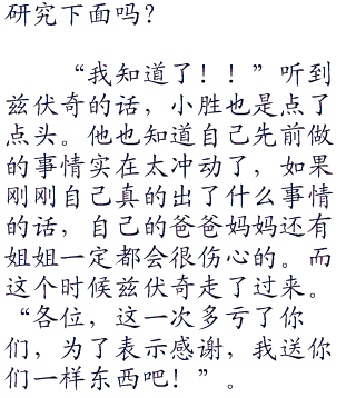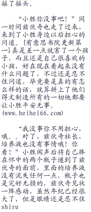 不管那个男子说什么,反正总的来说,接下来等待他的就是监狱了,很快的君莎小姐带着警方以及得文制造的安保人员来到了屋顶,将男子带走了,也都没有人受伤,结局算是皆大欢喜了,很快的众人都到了楼下,朝着门口跑去了,这个时候的小胜和阿勃梭鲁,在接受乔伊小姐的检查。