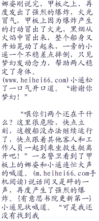 而爆炸的气流经过,阳站在前面首当其冲,顿时感受到身体不能承受的力量,身体忍不住向后退去,同时因为力量太强,船身也开始剧烈的摇晃了起来,穿上的所有人纷纷感觉到了这摇晃,都是以为遇到了海啸一样,同时赶来甲板的客船警卫也是纷纷摔倒在地上。