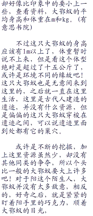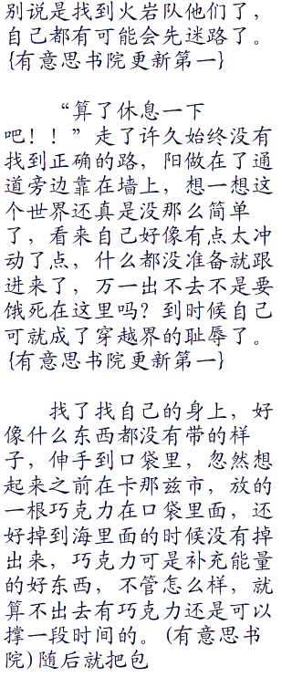 整个遗迹就好像是一片巨大的迷宫一样,前进了一阵之中,四处看到的只有一条又一条的道路,还有许多的分叉口,但是无论走哪一边接下来遇到的就是更多的分叉口,这让阳不由的一阵烦恼,这种地方可没有地图,没办法寻找正确的道路,这样下去