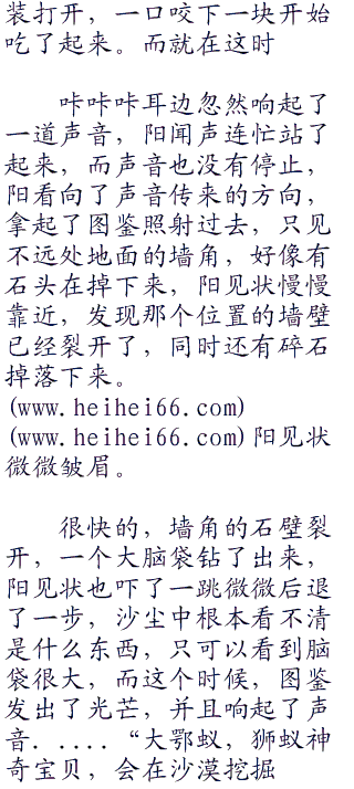 “呜!!”来到了遗迹的门口,阳忽然感觉到一种奇怪的感觉,就好像一种强烈的心跳声一样。而这个心跳声好像在指引着他一样,不在犹豫,阳直接走进了遗迹里面,遗迹里面很阴暗,但是因为脚下都是沙子的缘故,所以一点都不潮湿,阳拿出神奇宝贝图鉴打开灯光继续前进。