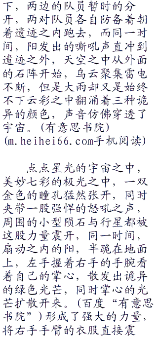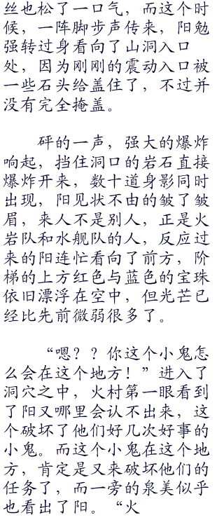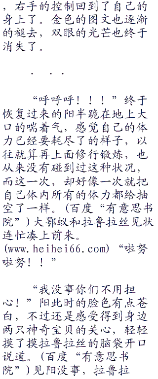 “啊!!”感觉上就好像有两股不同的力量要把自己拉开一样,同一时间空中的两颗珠子也好想受到了吸引一样,宝珠之上浮现出了红色与蓝色的图文如同迷宫一样,随后一红一篮两道光芒从宝珠之中冲了出来,眨眼间射入阳的双眼之中,阳顿时发出痛苦的叫声,一旁的大鄂蚁和拉鲁拉丝都是害怕的看着这一幕。