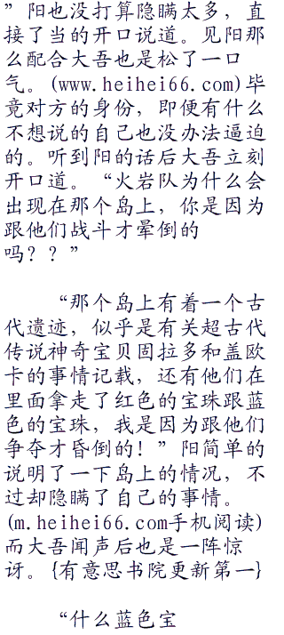 “不用这样啦!况且这一次我好像也没有救到,好像反而出糗了呢!”阳见状笑着对姐弟两个说道。当然不是真的什么都没做,况确要是没有小胜在的话,阳也不会分心的那样的话,火岩队根本没办法把阳怎么样,听到阳的话,不等姐弟两个开口,后面的大吾就率先开口了。