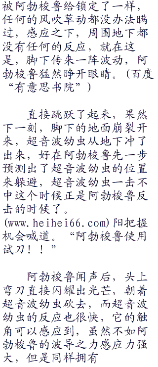 “库咔!”听到了阳的话后的超音波幼虫高兴的点了点头。阳见状也很高兴,对着超音波幼虫开口说道。“那么我要开始了,接下里就要收服你了!!”