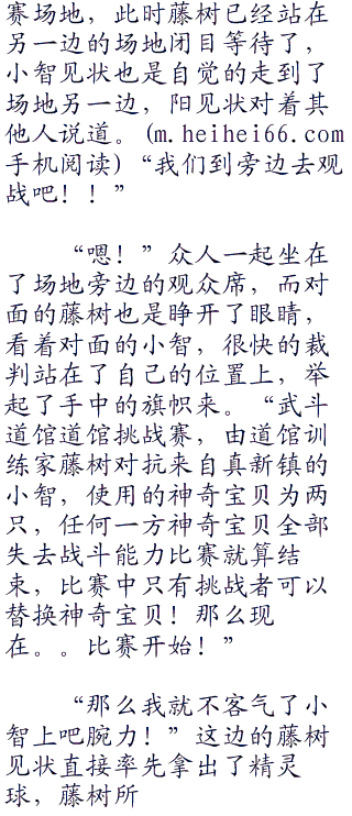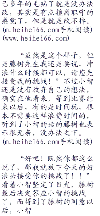 “可恶,现在可不是玩的时候,道馆训练家不接受挑战,却在那里玩,我实在不能接受!”小智闻声也没有在意小胜是不是在嘲笑他不会游泳,反而是紧紧的盯着前面冲浪中的藤树开口说道。小智不是说不喜欢玩的人,只不过他还是希望,能把正事都解决了,再来好好玩那样才对的啊!
