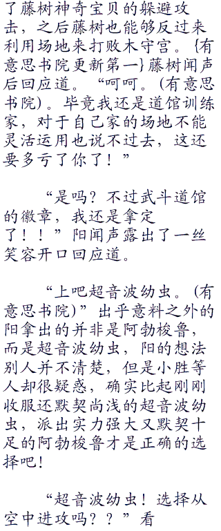 “回来吧腕力,幸苦你了,接下来就好好休息吧!”很快的,藤树从惊讶之中恢复过来,拿出了精灵球收回了腕力,随后将精灵球收了起来看着阳。“阿阳真没想到,你竟然有这样的方法,来破坏场地,使我的防守彻底瓦解,这样的话,等于说我的下一个神奇宝贝,也没办法使用这一招了!”