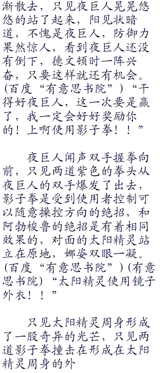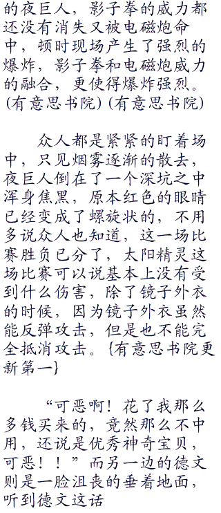“高速星星虽然没有用,但是穿上了念力的外衣以后,那个高速星星的威力就能够实质性的命中并非实质性的夜巨人!”阳一眼就看出了其中的奥秘,其实这样的战斗方式,可说是阳的拿手绝活了,娜姿跟在阳身边那么久了,自然也学到了许多,阳的战斗技巧。不过不得不说这一点阳是没有想到的。