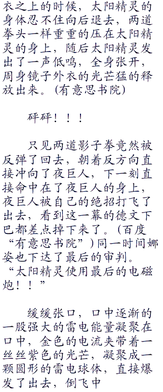 笼罩在高速星星上面的念力,催动着高速星星速度变得更快了,下一刻高速星星直接命中了夜巨人,让在场的众人都是一阵惊讶,包括德文在内下巴都差点掉到地上了,倒是阳也带着一丝意外,不过很快就明白了其中的原因,没想到娜姿跟自己在一起那么久了,战斗中似乎也带着一些自己的风格。