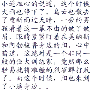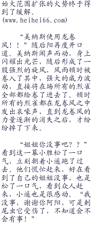 被烈雀包围,小遥根本没办法脱身,感受着身上的疼痛,不过小遥虽然是女生,这种时候却是表现出了一般人难以拥有的毅力来,紧紧的护着怀中的刺尾虫不让它再受到一点伤害,看着这一幕的刺尾虫此时很虚弱,但是也很感动,努力的挣脱想要出来战斗,却被小遥紧紧抱住。“你不能再战斗了!你放心,我一定会保护你的。”