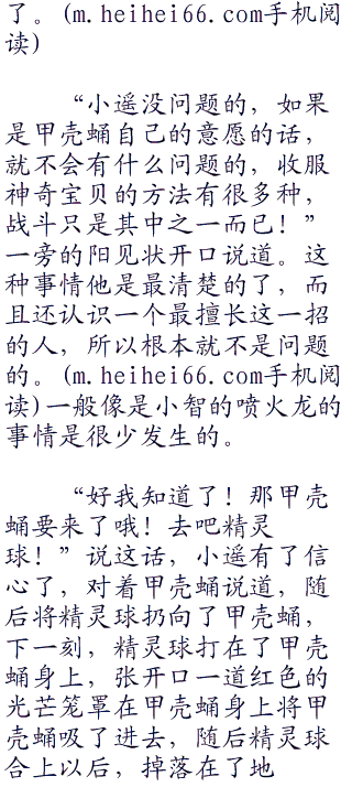 “呃。。呵呵,可是不战斗就收服这样没问题吧??”把地上的精灵球捡了起来,小遥站起身来,准备收服甲壳蛹了,不过要扔球的时候又是开口说道。在她的印象中,要收服神奇宝贝,那都是战斗的,不过这一次好像没有,而且现在叫她战斗的话,她实在下不去收