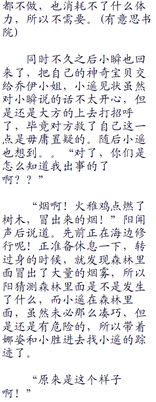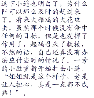 “这样就好了,好了没什么事情了,我们回去吧!”见小遥没有泄气众人也松了口气,随后阳就开口说道。事情也都结束了,趁着现在烈雀们还没有醒过来,是可以离开的了,虽然一点也不怕,不过总是不太好的嘛!况且烈雀们本身也没错,一开始也是火稚鸡先打中的大嘴雀的。