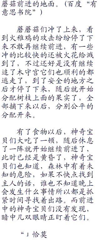 “么么!!”不过就在这个时候,只见树后面许多身影纷纷走了出来,一大群好像蘑菇一样的神奇宝贝出现在了众神奇宝贝的面前,是大群的蘑蘑菇群,看起来这里好像是它们的地方,要知道在野外,生存可不容易,而对于
