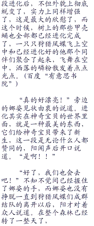 “那个是什么东西? ?”小胜看清以后立刻开口问道。而且那样的物体还不只有一个,只有一个的话,不足以照亮这么一大片,每一刻树上粗略看起来都有五六个的数量,小胜惊讶的开口说道。阳闻声看了看小遥手中的甲壳蛹说道。“它们是甲壳蛹!!”