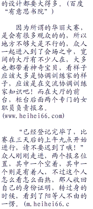 因为乔伊小姐是每个会举办华丽大赛时候的评审,所以问她是在清楚不过的了,而听到了阳的问话也知道,他们会这么问可能是要参加比赛的,对于有人参加比赛,她作为比赛的评审自然是很高兴的。“这个啊!出了中心以后,顺着主街道直走就能够看到了哦!”