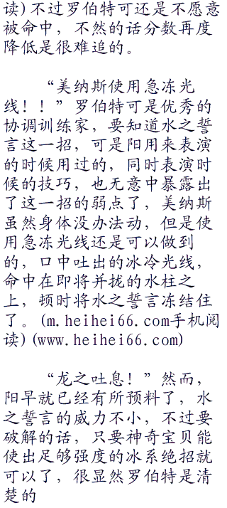 飞溅而来的冰块碎片,瞬间击中了罗伯特的美纳斯,美纳斯发出了一声惨叫,而罗伯特也是极为惊讶,看来对手虽然对华丽大赛并不熟悉,但是在战斗上的心得却远胜自己,这种巧妙利用场地之中一切元素的能力实在是太不可思议了,不过他也不会就这样认输。“美纳斯使用神秘守护!”