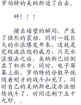 罗伯特的美纳斯闻声,身上神秘守护的光芒闪耀了起来,冰块击打在身上纷纷粉碎了,虽然被击中了,但是这一次算是一次不错的防御,虽然自身被击中也扣了一些分数了不过这一次的抵挡也给阳降低了一些分数,虽然不多,但是也是一个开始了。