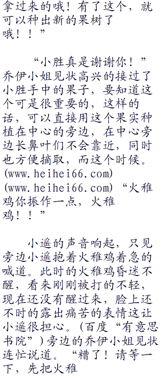 “这个不用担心哦!看这个!”小胜这个时候开口说道。随后从口袋里面拿出了一个甜桃出来,看到小胜手里的甜桃的时候,乔伊小姐顿时一阵好奇。小胜见状得意的笑道。“嘿嘿!这个是我刚刚趁乱