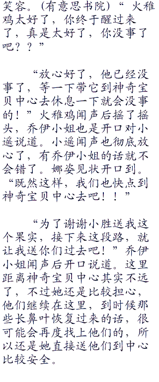 乔伊小姐的脸上满是担心的样子,看起来这个森林的状况确实很糟糕,毕竟森林很大,一时间是走不出去的,所以很多过路的旅行者都要再神奇宝贝中心休息,而它们的神奇宝贝,有时候被这里的长鼻叶攻击受伤,药物不够的话,长期下来没办法给受伤的神奇宝贝治疗的。