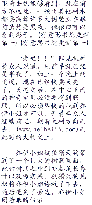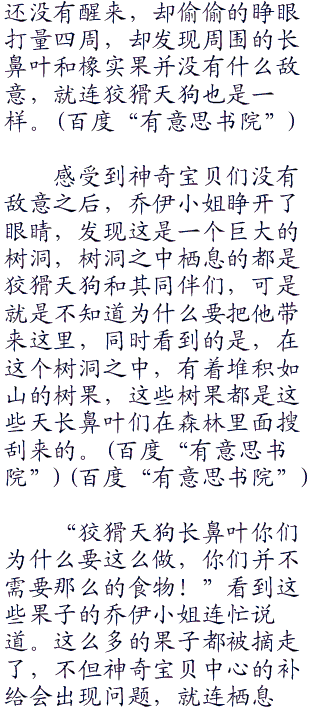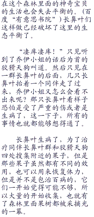 这颗大树是整个森林最大的一颗大树,有很多年的历史了,一共有好几层楼的高度,这里一直都是被擅长爬树的长鼻叶所占领的,其他神奇宝贝一来没有办法攀爬那么高的树木,而来是害怕长鼻叶的攻击,所以这一整棵树都是属于长鼻叶一族的,而此时的阳等人,根据乔伊小姐留下来的线索一路找了过来。