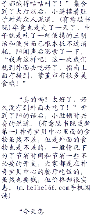 “快看紫堇市到了耶!”一行人在告别了乔伊小姐以后,继续的朝着下一个城市紫堇市出发,终于在天黑以前看到了紫堇市,小胜立刻兴奋的喊道,要是天黑之前还没有赶到的话,又要露宿野外了,虽然说露宿野外已经是家常便饭了,但是有地方住总好过露宿在外。