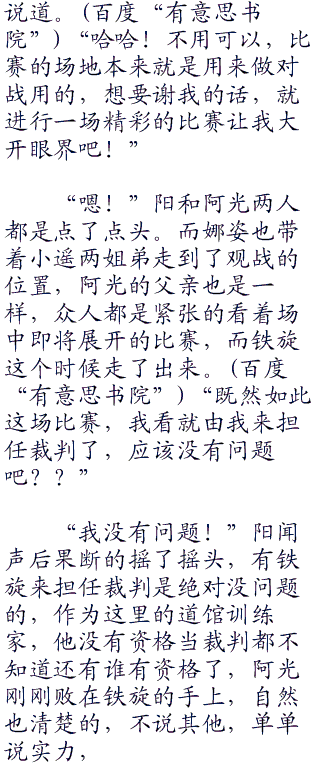 “谢谢您!”阳见状上前开口道。毕竟道馆的比赛场地是用来做道馆比赛的,破坏了的话,还是要道馆方面自己整理的,不过对于这个铁旋倒并不是很在意,大方的