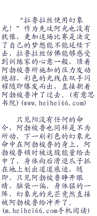 “那么现在比赛正式开始阿光先攻!”同时铁旋也宣布了比赛开始了,当然是将有利条件交给了阿光的,从阿勃梭鲁出现的瞬间,铁旋就知道,阿光想要赢得这场比赛更加的艰难了,以他的眼力自然是看得出来的,眼前这只阿勃梭鲁,孤傲却锋芒隐藏,就好像身经百战的战士一样。