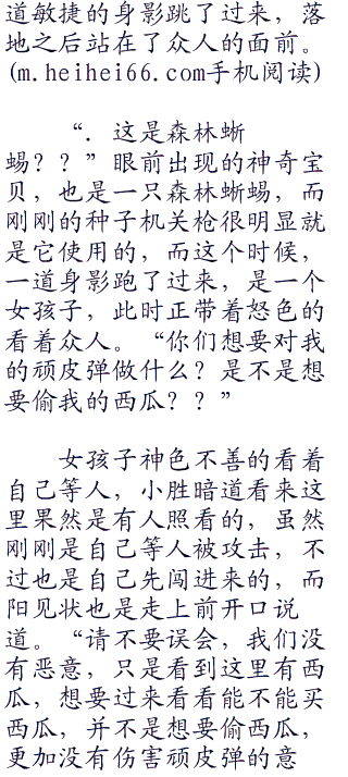 要知道这里的习惯已经是很大的了,平时在外面城市商城里面也少见能够看到那么大的,但是这个未免超标太多了吧!而且这里的地面凹凸不平的,又不是下坡,西瓜会这样滚吗?阳仔细一看隐藏在树叶里面的,这颗西瓜竟然是长着眼睛的。而此时小胜也注意到了这颗西瓜了。