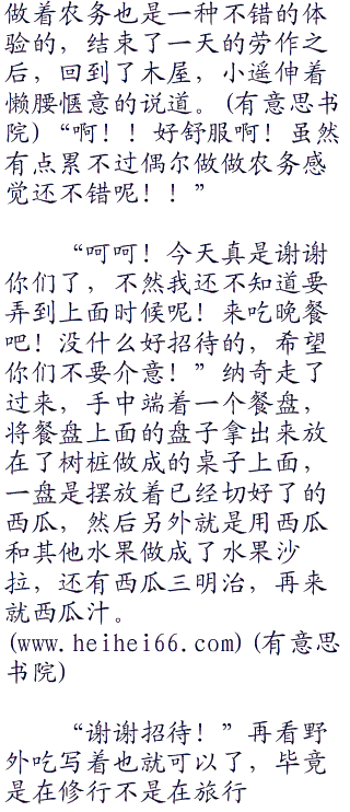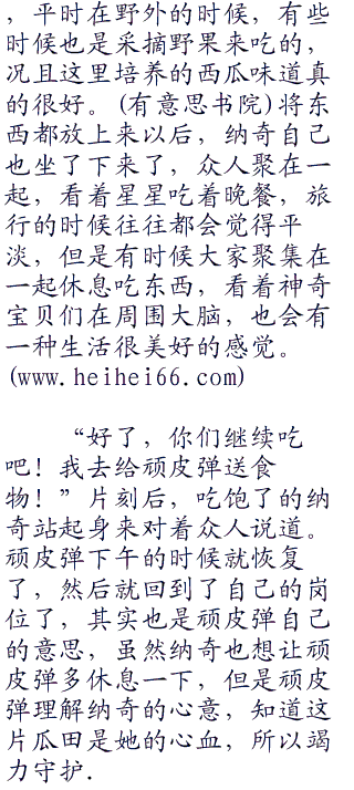 “那就好!”听到了纳奇的话后,阳也松了口气,随后在纳奇的邀请下,众人决定,今天干脆就在这里休息了,虽然时间还早,但是前往绿荫镇也没必要太着急,下午的时间,众人为了感谢纳奇热情款待,所以提出帮忙打理瓜田,一直到了晚上才回到木屋休息。