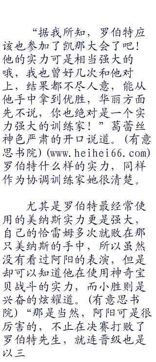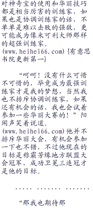“嘻嘻!姐姐晋级到了决赛,不过可惜没有拿到优胜,最后拿到优胜的是阿阳哦!”小胜闻声笑着说道。而葛蕾丝则是有点讶异的看着阳,先前介绍的时候,没有听他说自己是协调训练家,没想到凯那大会的优胜竟然是他于是就开口道。“阿阳也是协调训练家吗??”