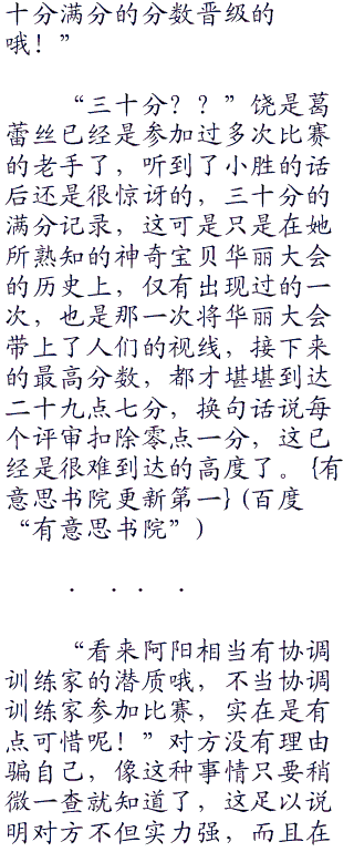 “不。。我是训练家,参加凯那大会纯粹是兴趣而已!这一次的绿荫大会就没有参加的打算了!”阳闻声后摇了摇头说道。而葛蕾丝闻声也了然的点了点头,这种事情也并非是什么稀有的事情,许多训练家平时也会参加华丽大赛的,这并不奇怪,让她惊讶的是,对方只是为了兴趣参加竟然就拿到了优胜。