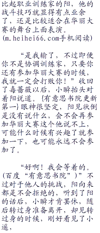 “那是阿阳和小瞬!”老远的,小遥发现了这边的动静,赶过来之后,正见到交锋激烈,小瞬的毒蔷薇被拉鲁拉丝的诱惑所命中了,然后被自己的阳光烈焰炸飞了,小遥惊讶的看着眼前这一幕,不知道为什么阿阳和小瞬两个人要比赛,不过还是聚精会神的看着。
