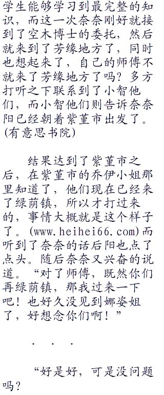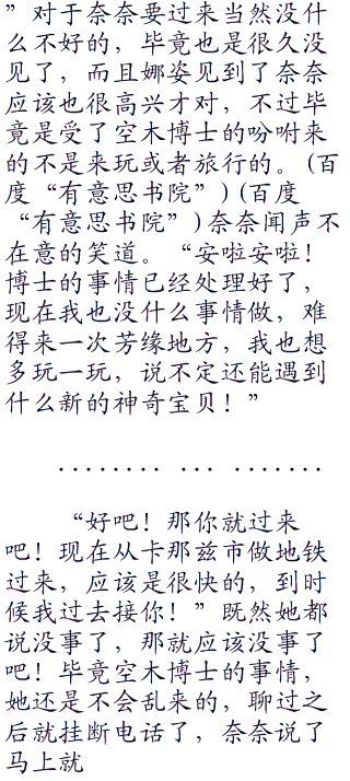 现在好了,打来的是奈奈自己连抱怨一下都不可以了,那边还惹了卡米兹蕾,不过算了,事情都这样了,也只能先这样了,不管怎么说,跟奈奈也有一段时间没见了,当时还是跟着自己一起旅行的小屁孩,现在都独当一面了,看起来也精神了许多,看来这段时间没有荒废修行。