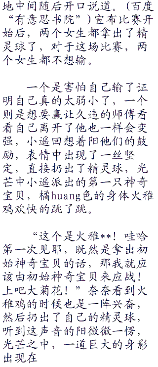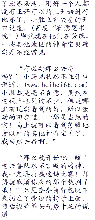 “没有人耶太幸运了,快点开始吧!我迫不及待的想要看到城都和关东地方的神奇宝贝了!”来到了比赛场地后,走在前面的小胜第一个看到