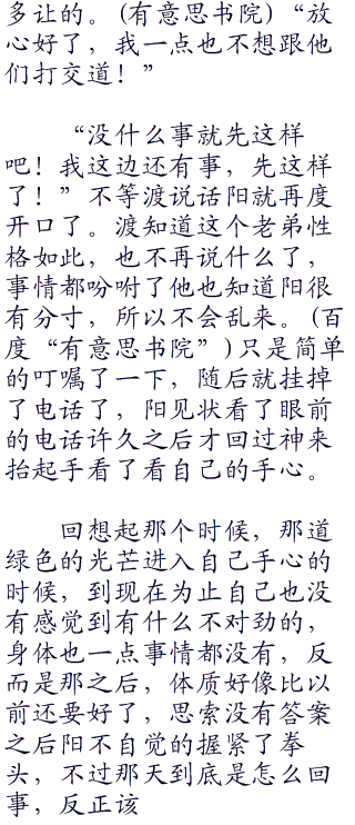 “嗯!怎么了?”看来自己的动态这个老哥还真是时刻关注呢!再怎么说,虽然自己现在只有十五岁(过了两个联盟了,长了一岁了不像动漫年纪不会变的,这里定的是一个联盟用半年时间),但是在这个世界已经算是成年人了,不需要时刻看着自己的吧!不过阳知道他并没有限制自己,只是担心自己而已。
