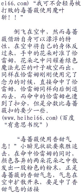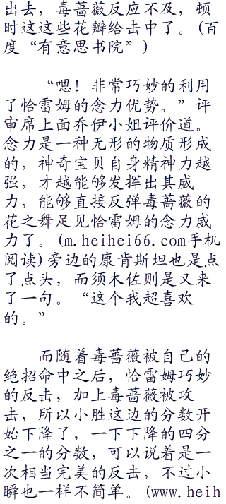 毒蔷薇的花之舞率先发动,伴随着风暴的粉色huaban席卷而出,形成了一股huaban形成的风暴,直接冲向了恰雷姆,而此时对面的恰雷姆和葛蕾丝都没有丝毫的动静,一直到花之舞来到了眼前才见葛蕾丝有所动静了。对着恰雷姆下达了命令了。“恰雷姆使用念力!”