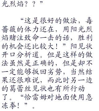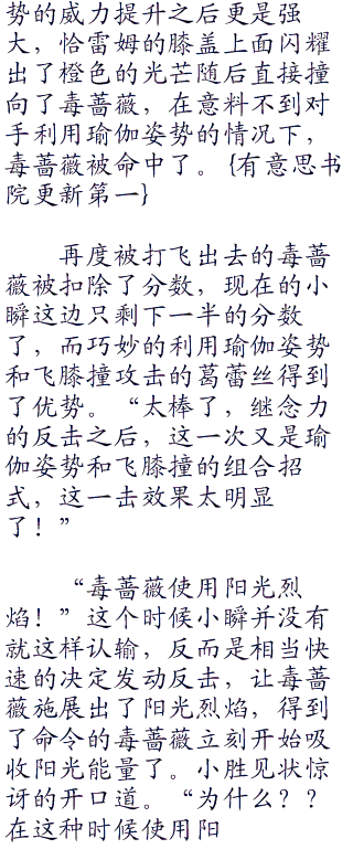 小瞬也使用了自己最擅长使用的神奇宝贝毒蔷薇,比赛就这样的展开了,现场的观众们都欢呼了起来,伴随着欢呼声,两个训练家在对峙之中展开了行动了。小瞬先发制人抢先出手。“毒蔷薇使用花之舞!!”
